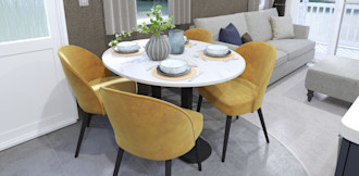 Marble effect dining table and upholstered dining chairs