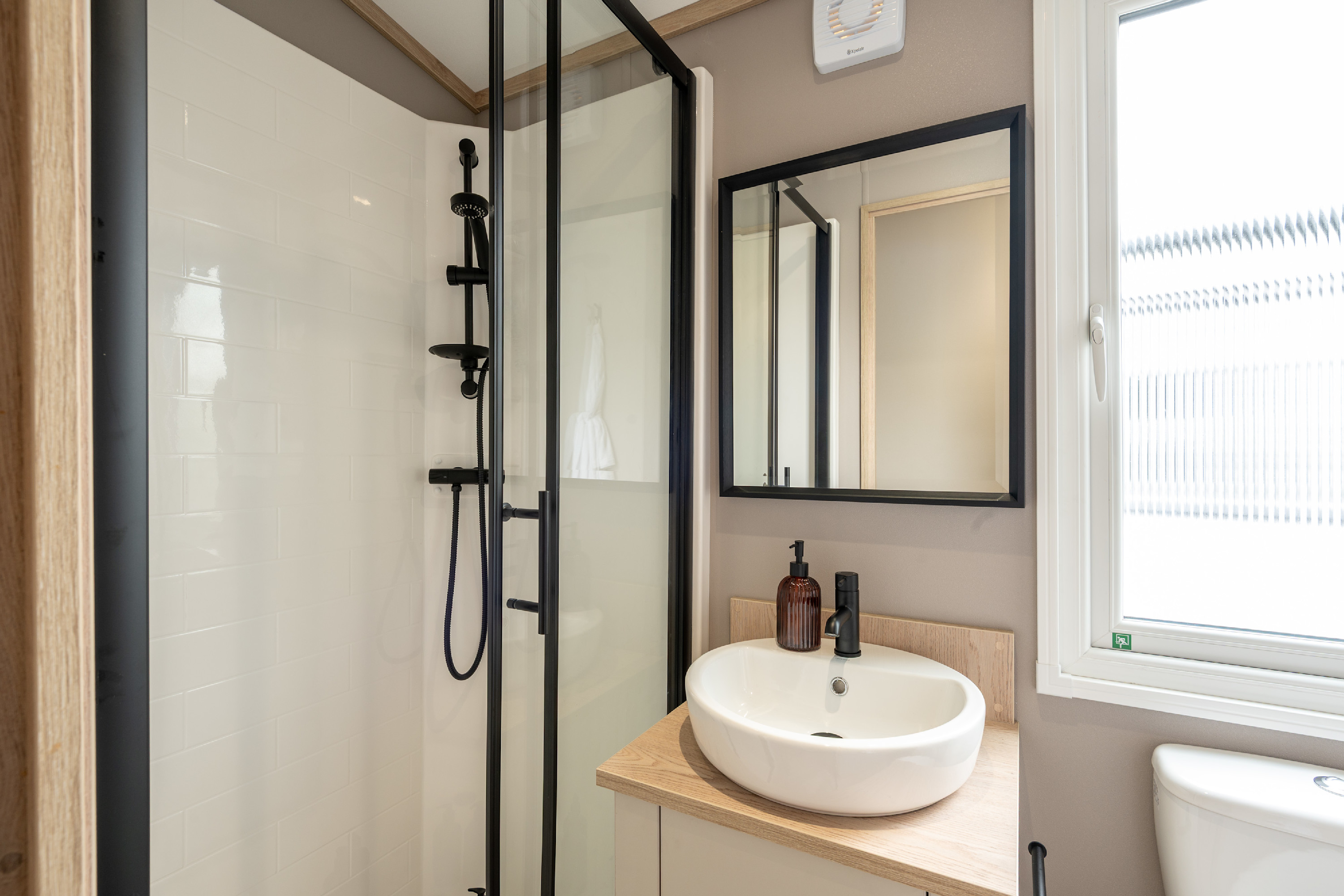 - Extractor fan and black towel radiator