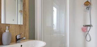 - Family shower room with a thermostatically controlled shower and basin